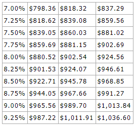 Payment differences between a 9.25 percent rate and rates a quarter percent lower down to 7 percent are shown in the following table based on housing price increases of 2 and 4 percent.